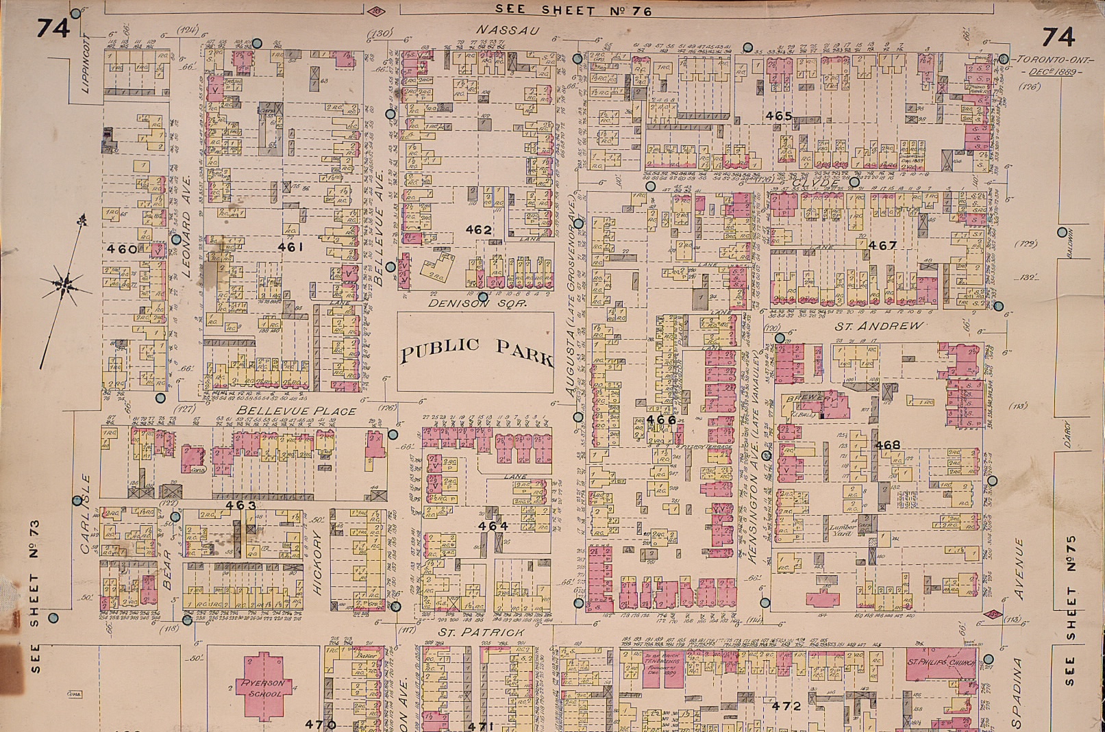 Toronto fire insurance plan covering Kensington Market. 1889.University of Toronto Map and Data Library.
