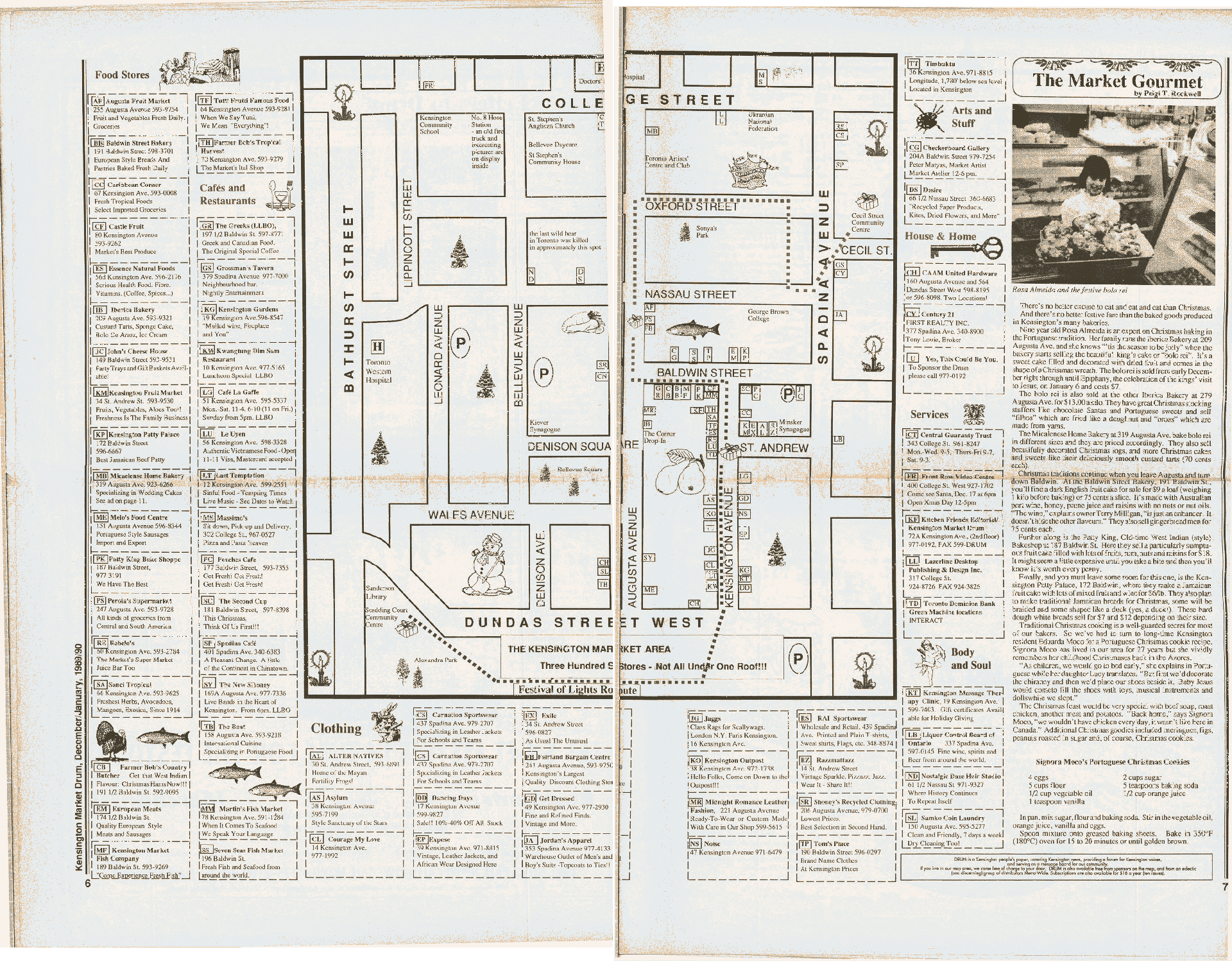 Map of businesses in Kensington Market from the 1980s.Kensington Market DRUM, December/January, 1989,1990.