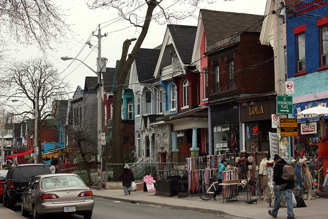 Business and residential spaces are also physically intertwined. Especially on Kensington Ave., one finds many small businesses occupying the first floor of Victorian homes, a legacy of the neighbourhood’s historical pattern of setting up informal stores in street-level residences. Kensington Market is an unplanned, organically occurring mixed-use area “combining a broad array of residential uses, offices, retail and services, institutions, entertainment, recreation and cultural activities” within walkable distance – precisely the kind of urban land use the City of Toronto plans to invest in creating more of. [4]