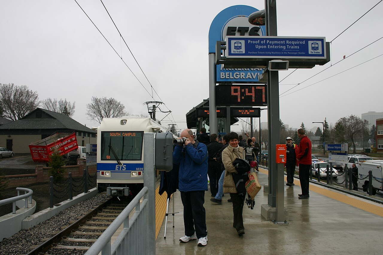 McKernan-Belgravia Station is located on the busiest corridor of the Capital Line, Edmonton’s oldest light rail transit (LRT) route. [1] The line plays a central role in the city’s transit network, connecting major destinations including the University of Alberta and downtown, and is supported by a high-frequency transit network in the city’s core. [2]