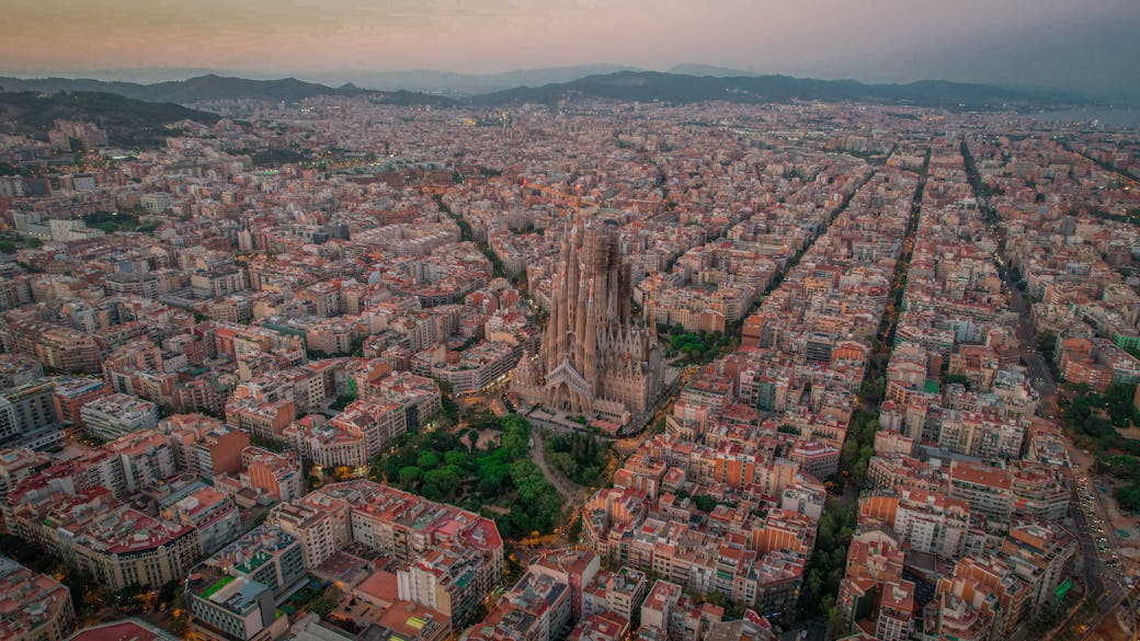 Compact mid-rise blocks, like these in Barcelona, provide sufficient density for vibrant local retail and services.Archie McNicol, 2023.