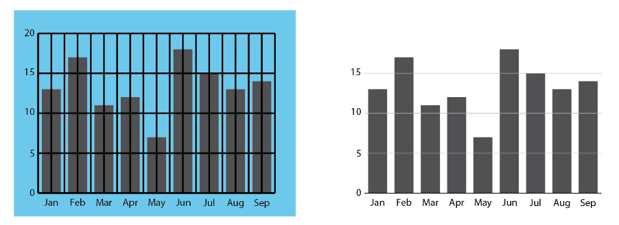 - Use subtle formatting of reference information like gridlines to keep the audience focused on the data itself.