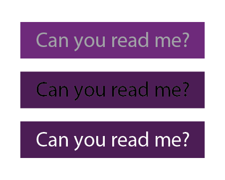 Using adequate font sizes and making sure there is adequate level of contrast between foreground and background, especially with text. The greater the contrast between the foreground and background, the easier it is to read. For text, keep in mind that font size plays a significant role: smaller fonts require even higher contrast between the text color and background to maintain readability. There are online tools for checking contrast ratios between background and foreground that are useful for design.